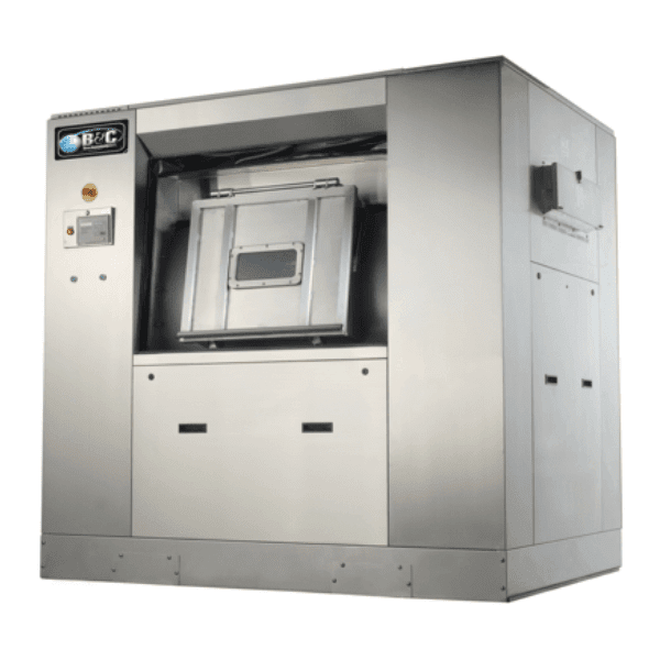 B&C 300lb Industrial Softmount Barrier Extractor, 30 Programmable Cycles, Advanced FM7 Control, 5 Compartment Supply Dispenser for Liquid and Dry Chemicals, 8 Connections for Liquid Chemical Injection, Programmable Speed, Water Levels and Temperature, Air or Spring Suspension Available (springs on SB-60 and SB-80), Stainless Steel Cabinet, 350 G-force, 208-230/60/1